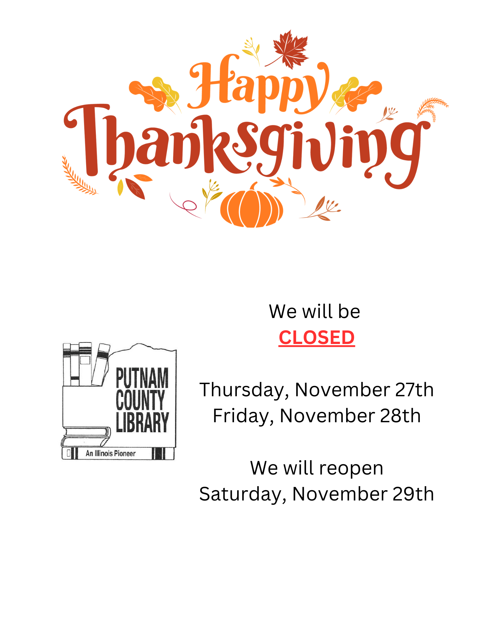 Library Closed – Thanksgiving