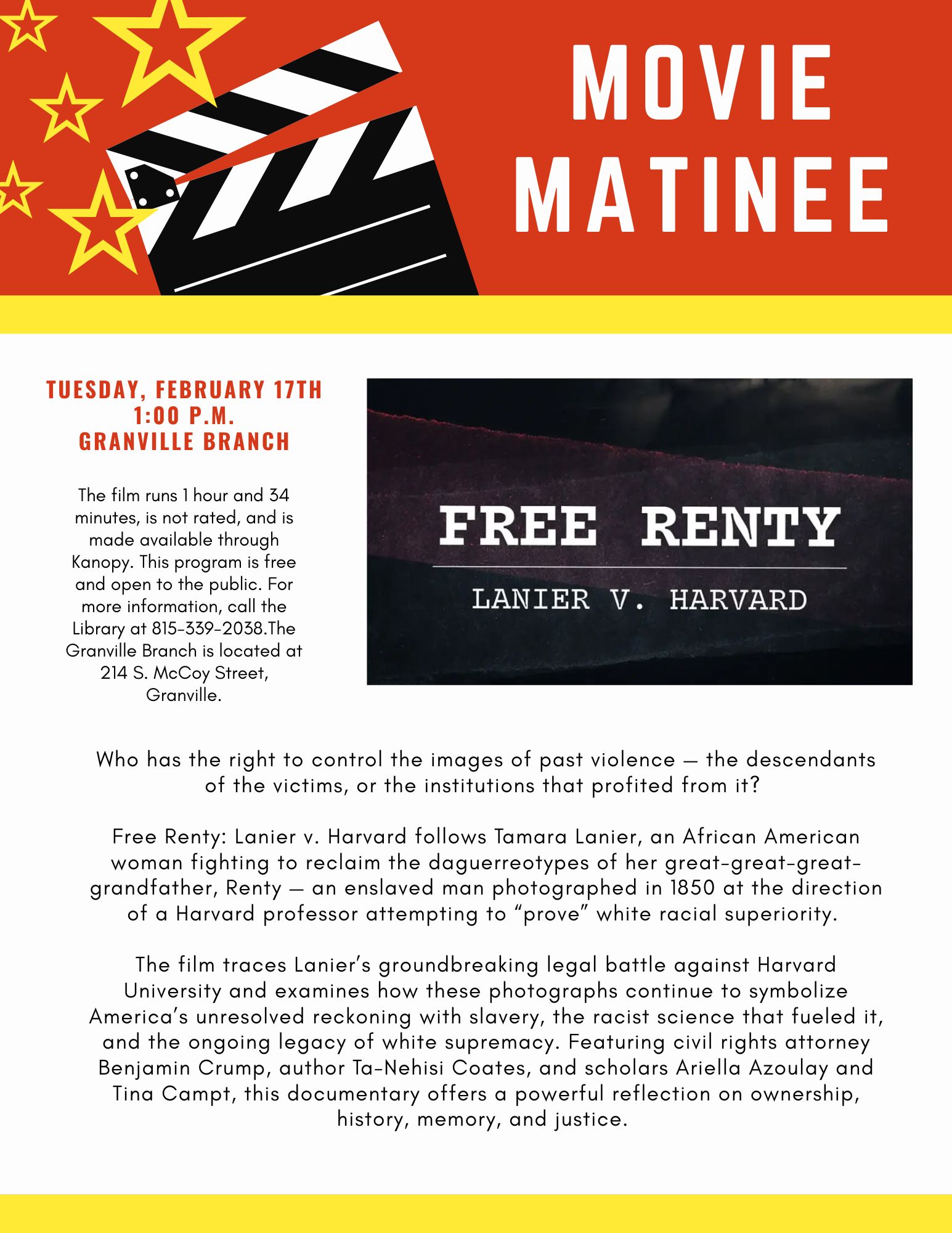 The film traces Lanier’s groundbreaking legal battle against Harvard University and examines how these photographs continue to symbolize America’s unresolved reckoning with slavery, the racist science that fueled it, and the ongoing legacy of white supremacy. Featuring civil rights attorney Benjamin Crump, author Ta-Nehisi Coates, and scholars Ariella Azoulay and Tina Campt, this documentary offers a powerful reflection on ownership, history, memory, and justice. The film runs 1 hour and 34 minutes, is not rated, and is made available through Kanopy. This program is free and open to the public.