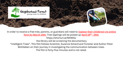 🌱 Tree species will be announced in early April. Tentative tree pickup will take place during #NationalLibraryWeek (April 19–25).