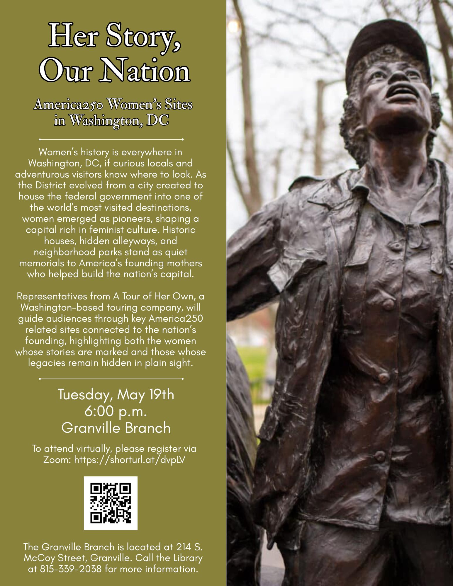 Her Story, Our Nation: America250 Women’s Sites in Washington, DC (Granville Branch) Tuesday, May 19th, 6:00 p.m.