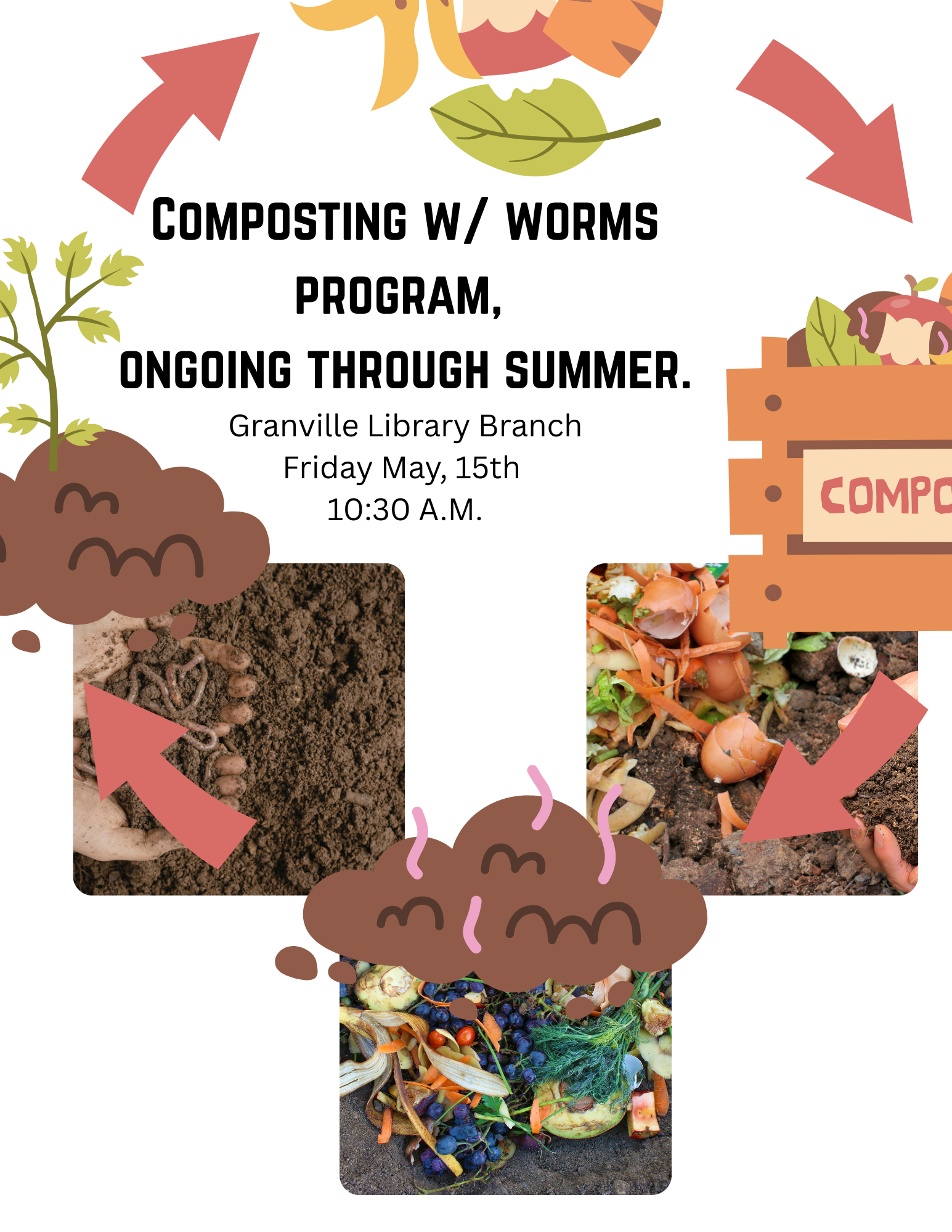 Friday 15th, 10:30 Composting w/ worms program, ongoing through summer.